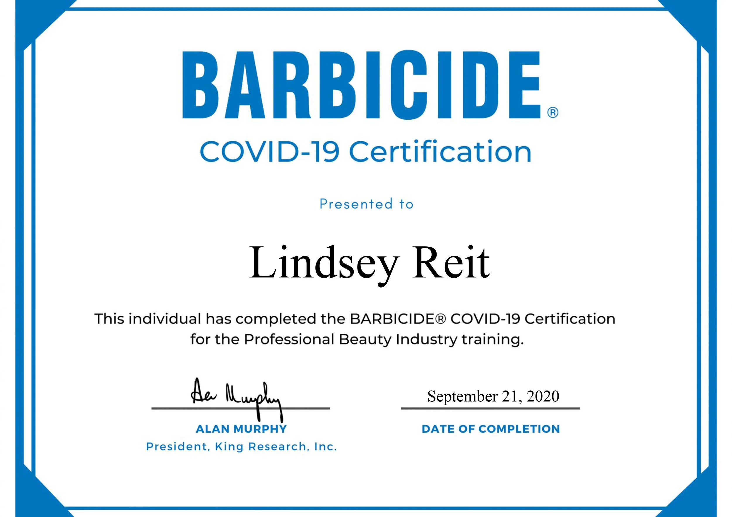 Covid-19 Certification from Dermalogica and Barbicide for Make Up Artists.